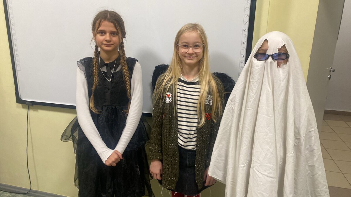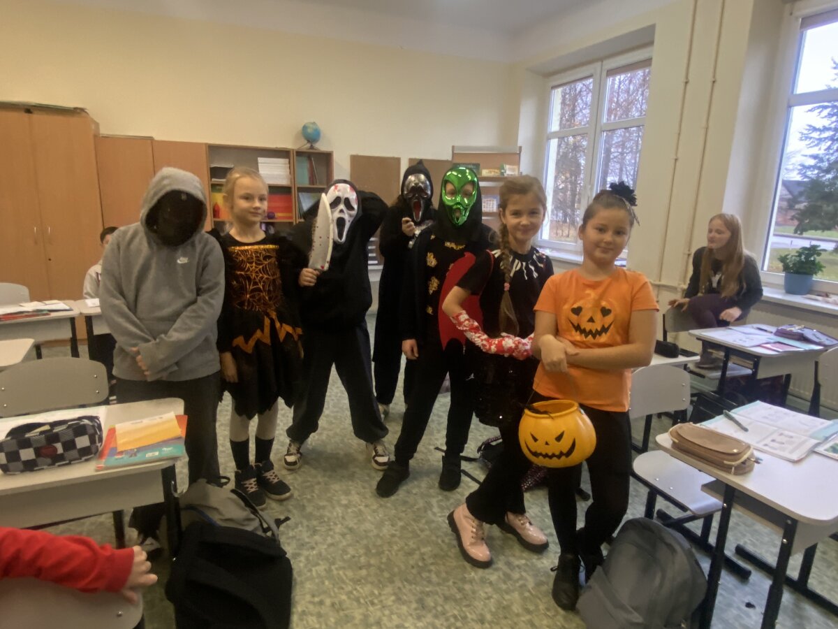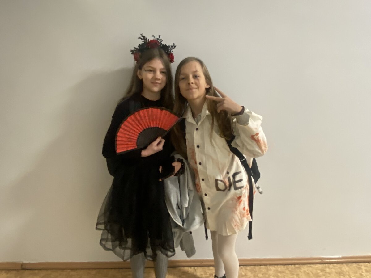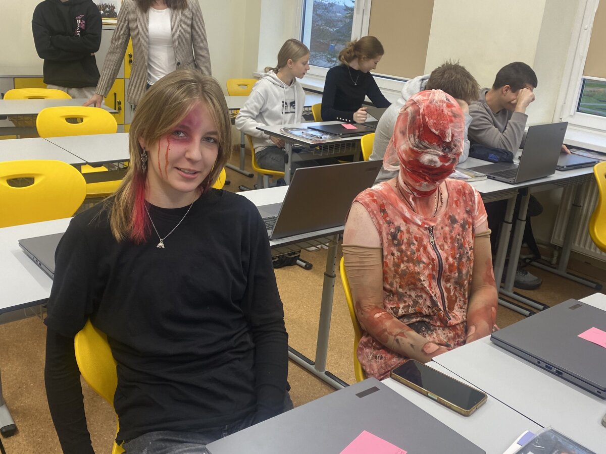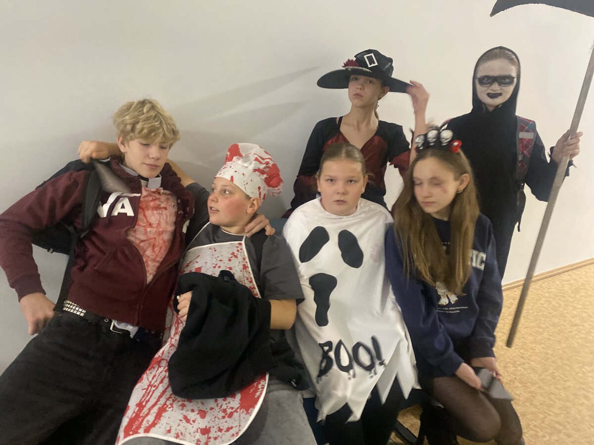 Gimnazijos mokinių tarybos nariai pakvietė mokinius persirengti šiurpinančiais personažais. Pasižvalgykite – kokie bauginantys veikėjai šiandien šurmuliuoja mūsų mokykloje!