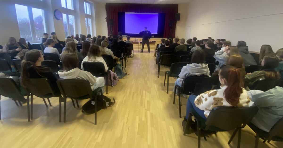 Lapkričio 24 d. gimnazijoje lektorius Darius Joneikis 5–8 klasių mokiniams skaitė paskaitą „El. cigarečių, „Snooze“ („snusų“) ir psichoaktyvių medžiagų grėsmės ir pavojai“. Paskaitos metu mokiniai buvo supažindinti su galimomis rizikomis, susijusiomis su elektroninių cigarečių, snusų ir psichoaktyvių medžiagų vartojimu.