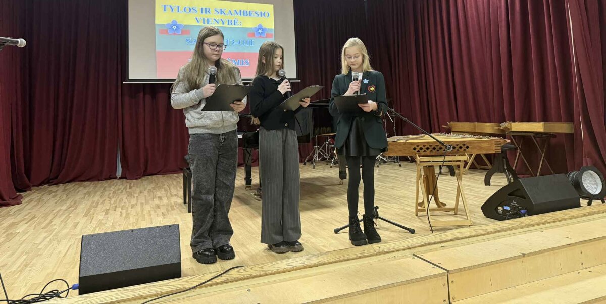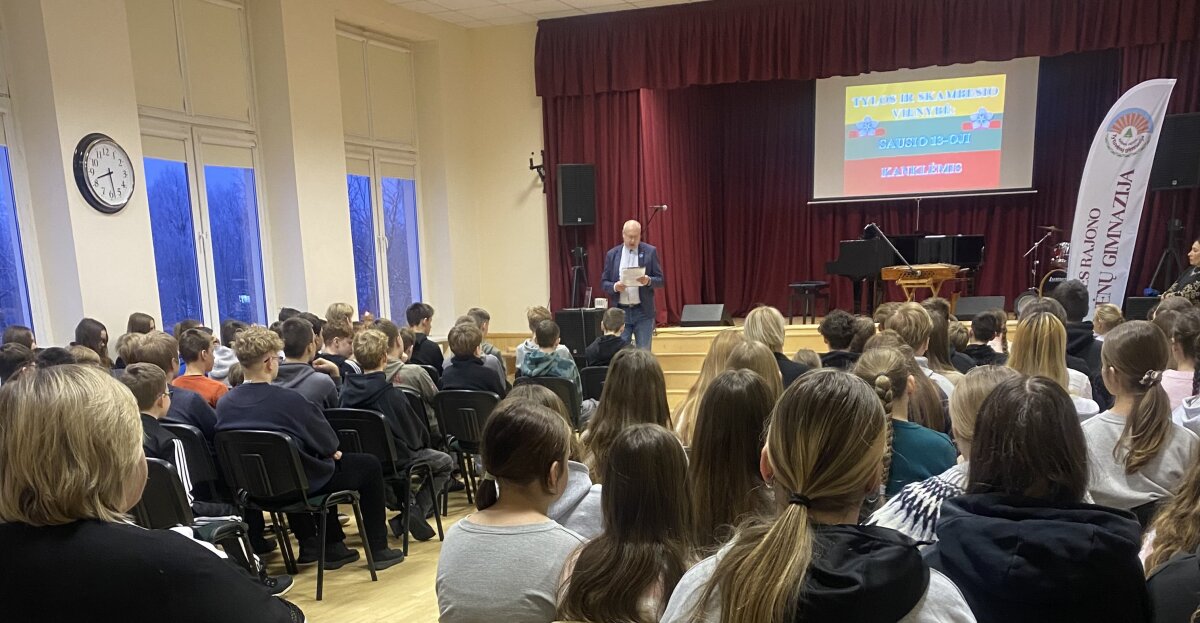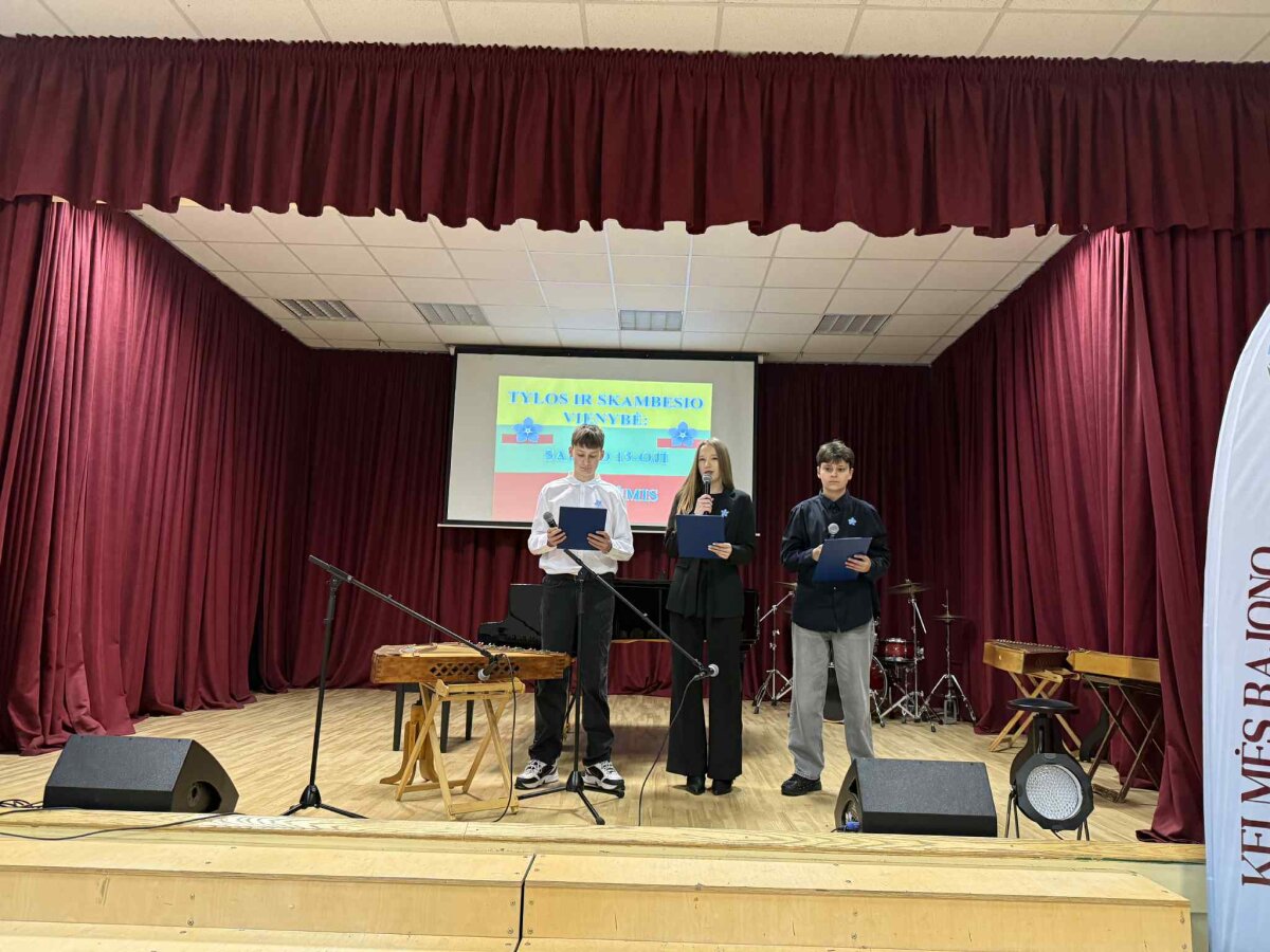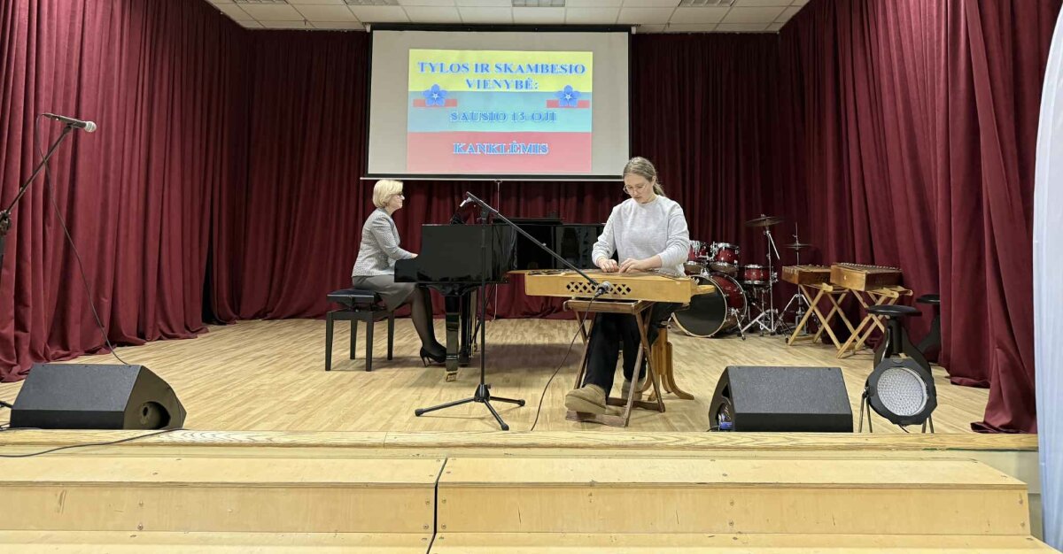 Po pilietinės iniciatyvos 4–8, I g klasių mokiniai rinkosi į salę, kur vyko minėjimas „Tylos ir skambesio vienybė: Sausio 13-oji kanklėmis“. Istorijos mokytojas Evaldas Butkus skaitė pranešimą apie Sausio 13-osios įvykius, primindamas lemtingas kovas už Lietuvos laisvę. Muzikos mokytojos Linos Baranauskienės mokiniai kanklių skambesiu kūrė jautrią ir prasmingą atmosferą, o mokytojų Angėlės Ševeliovaitės ir Vitalijos Šilerienės mokiniai deklamavo eiles, skirtas Laisvės gynėjų atminimui.