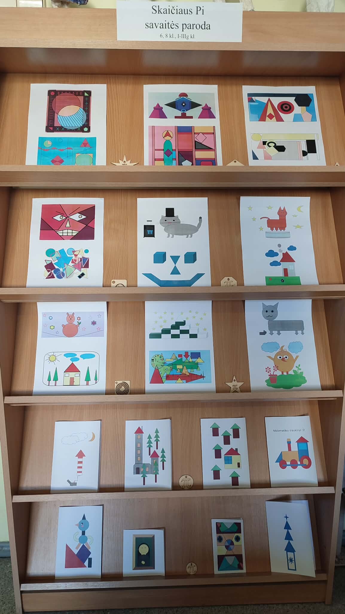 kovo 9-13d. 6,8, I-IIIg klasės per technologijų pamokas kūrė piešinius iš matematinių figūrų ir gamino raktų pakabukus.