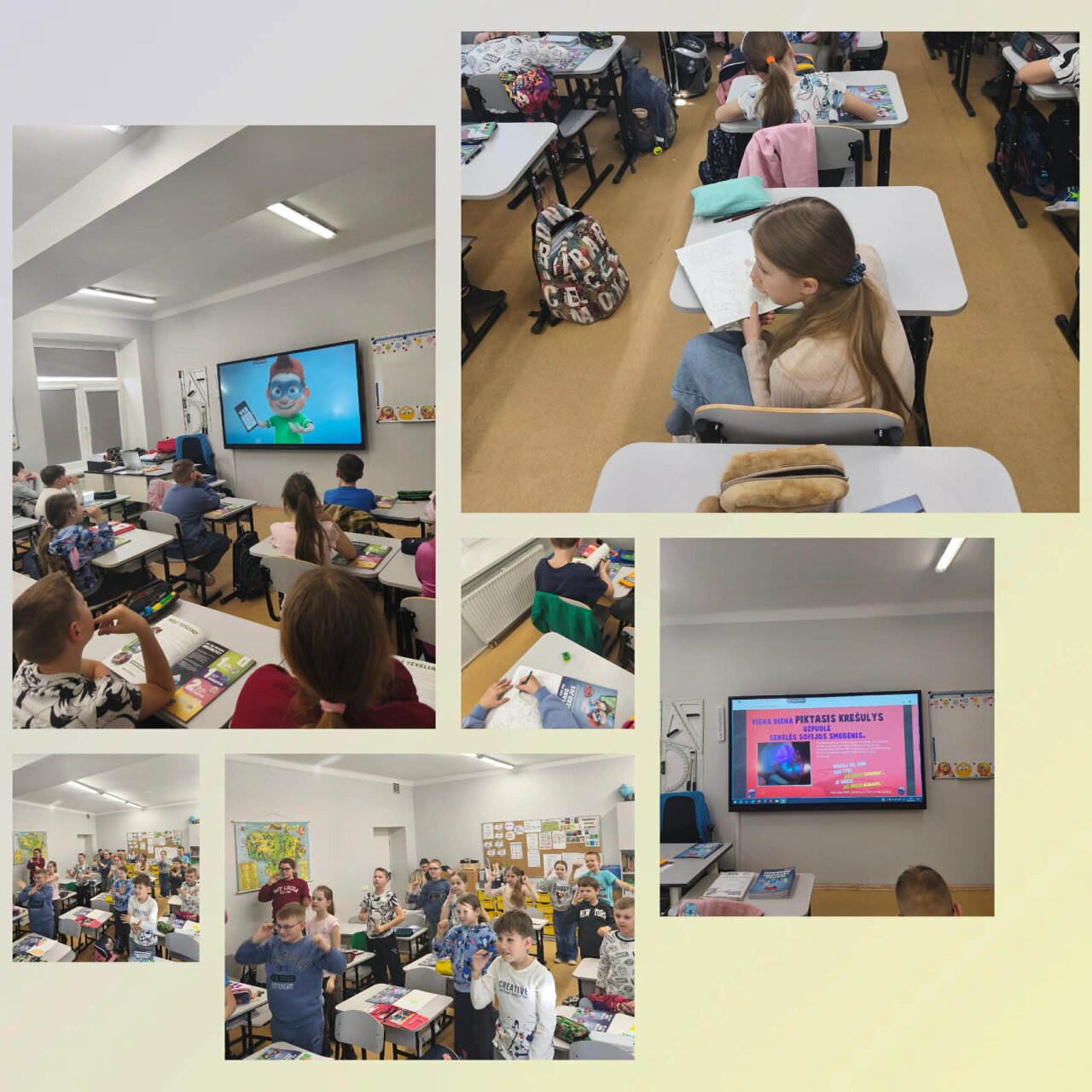 Šiandien vyko pirmasis užsiėmimas, kurio metu visuomenės sveikatos specialistė supažindino mokinius su insulto požymiais ir paaiškino, kaip svarbu laiku atpažinti pavojingas situacijas bei kviesti pagalbą.
