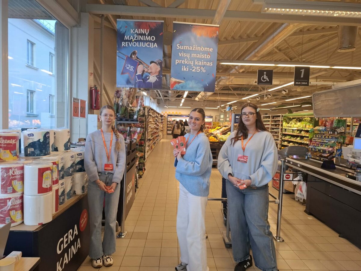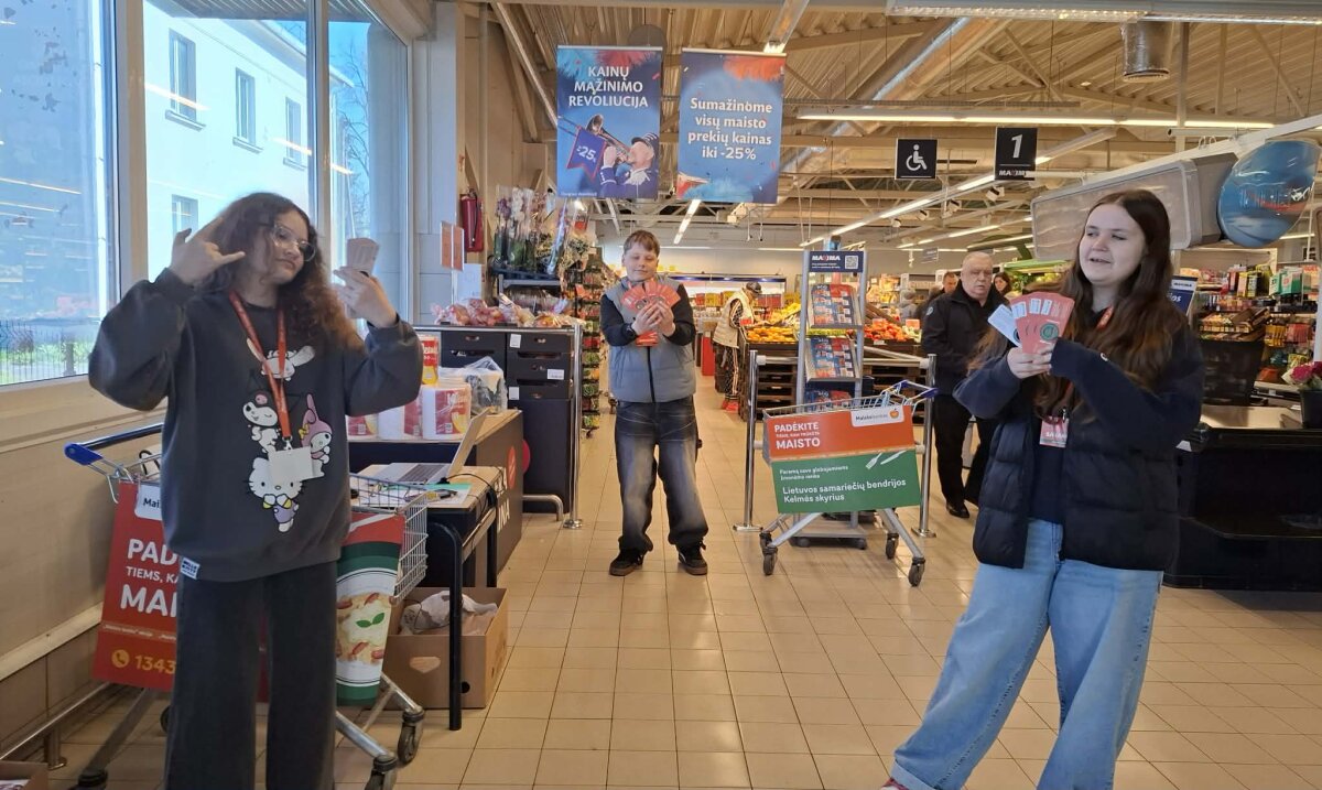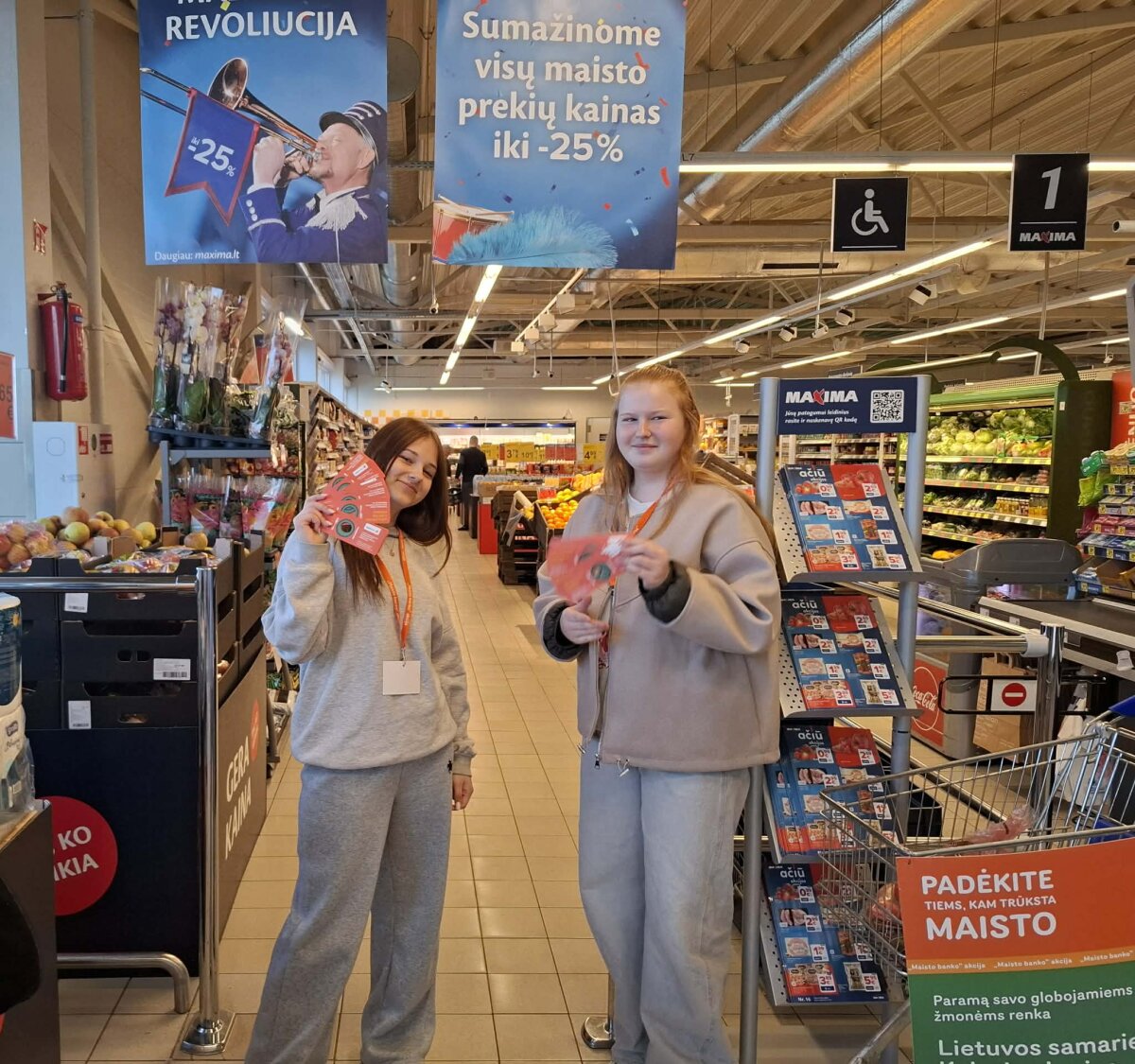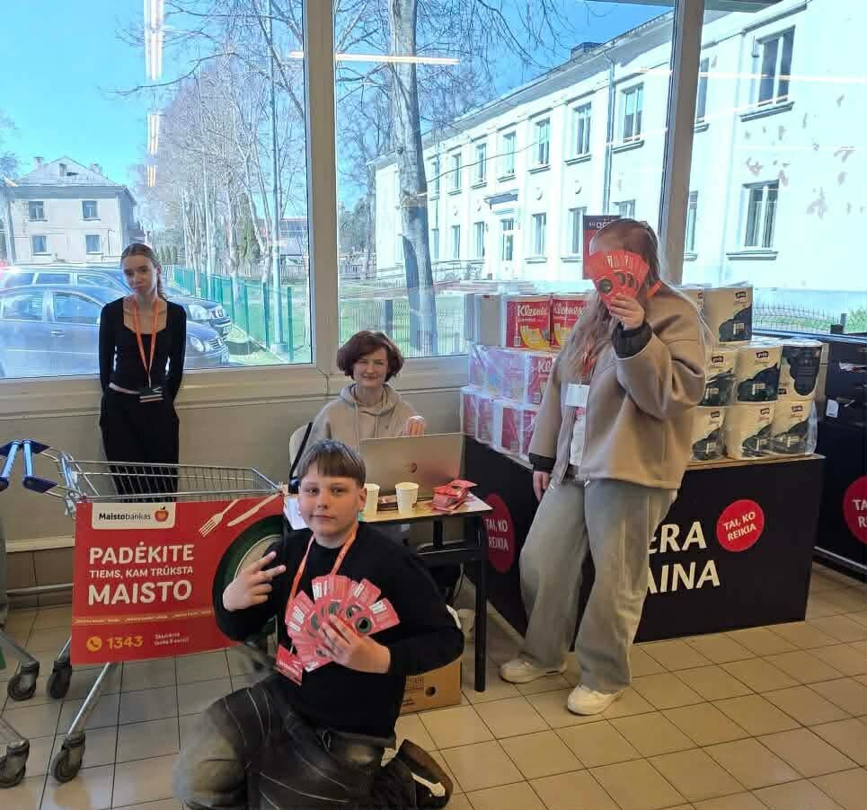 Savaitgalį mūsų gimnazijos mokiniai dar kartą įrodė, kad gerumas ir atsakingumas yra neatsiejama mūsų bendruomenės dalis. Dvi dienas trukusios „Maisto banko“ akcijos metu, savanoriai darbavosi prekybos centre „Maxima“, kviesdami pirkėjus prisidėti prie pagalbos nepasiturintiems. Mokiniai su šypsena, drąsiai kalbino lankytojus, dalino skrajutes, rūšiavo suaukotus produktus, o geradarius palydėjo nuoširdžiu „ačiū“. Jie puikiai suprato savo užduoties svarbą, laikėsi susitarimų ir rimtai žiūrėjo į patikėtas pareigas.