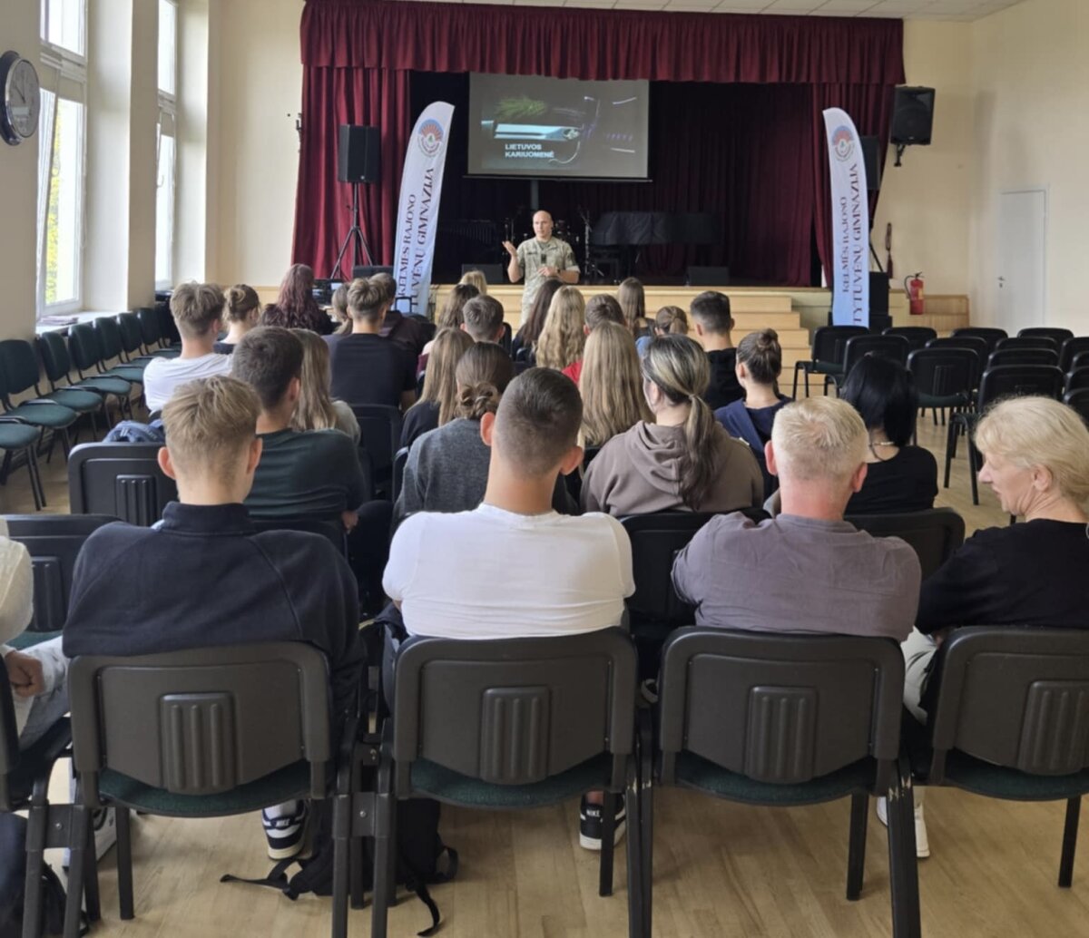 2025-09-11 Kelmės rajono Tytuvėnų gimnazijoje su abiturientais susitiko Šiaulių regioninės karo komendantūros vyresnysis verbuotojas seržantas Arūnas Navickis. Susitikimo metu seržantas papasakojo apie galimus karinės tarnybos atlikimo būdus, kokios būtinos sąlygos, norint atlikti karinę tarnybą, kokios lengvatos teikiamos stojant į aukštąsias mokyklas jau atlikusiems karinę tarnybą.