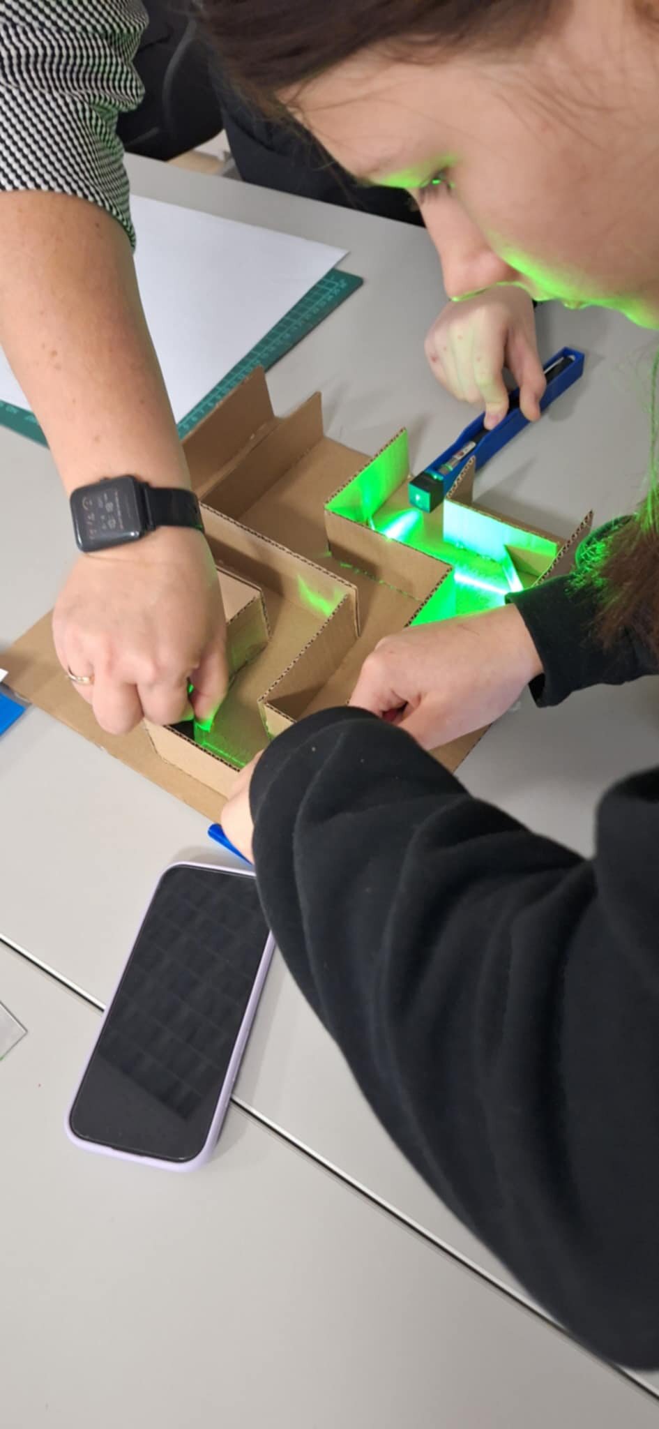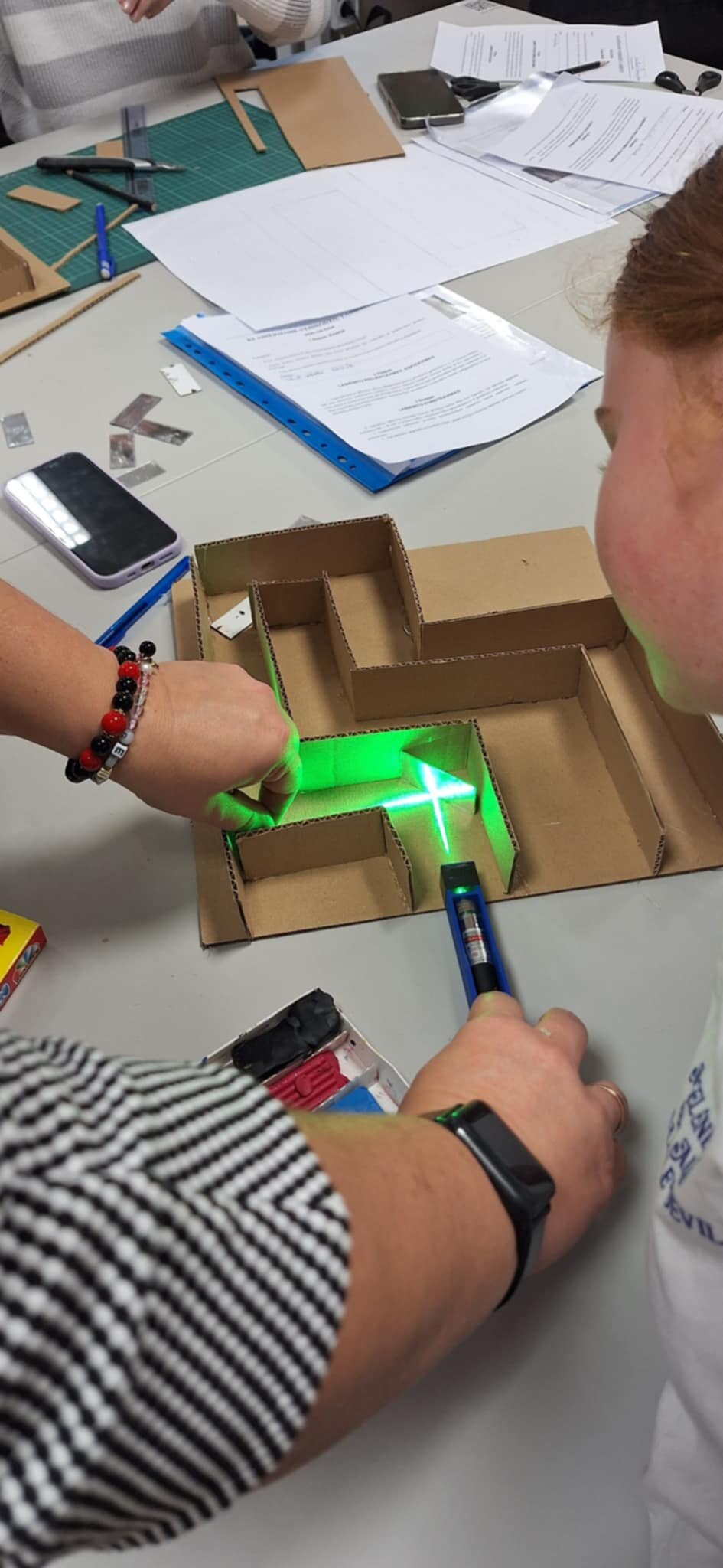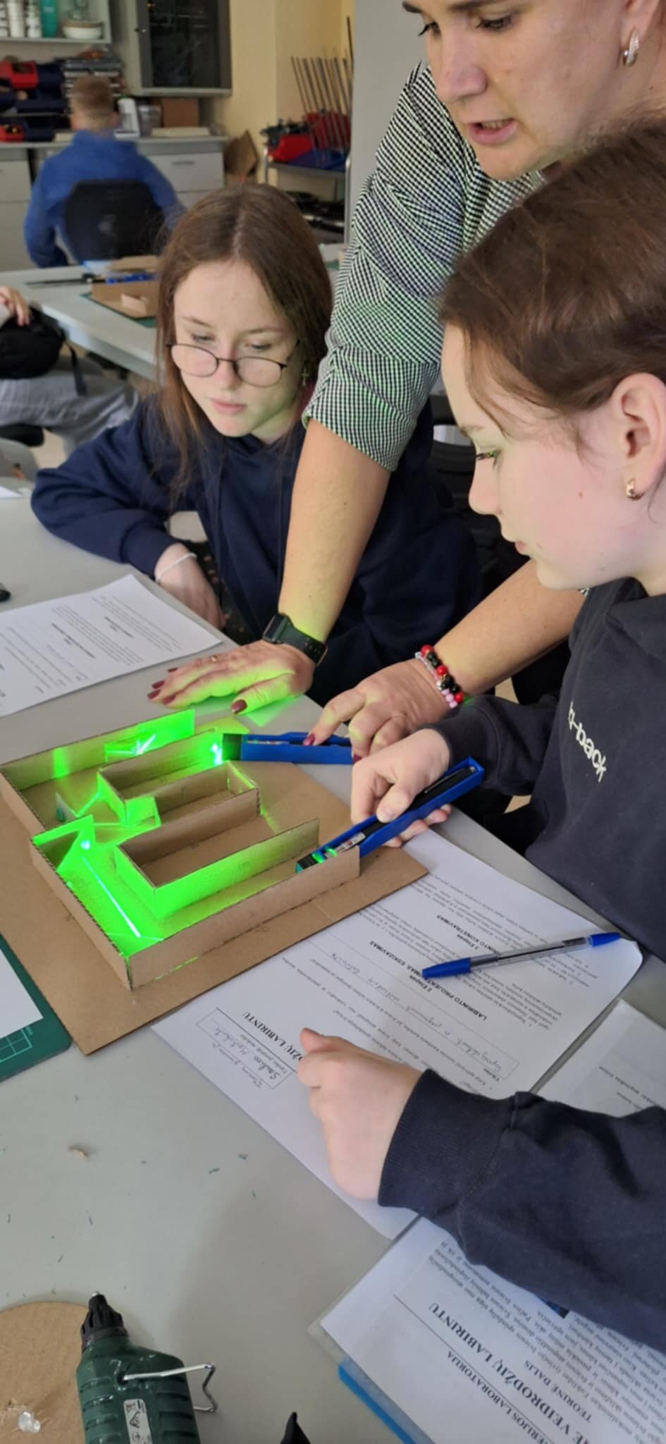 2025 m. spalio 16 d. 7b klasės mokiniai Šiaulių STEAM centre atliko tiriamąjį darbą „Klaidžiojame veidrodžių labirintu“. Mokiniai projektavo veidrodžių labirinto eskizą, gamino jį iš plokščiųjų veidrodžių ir tyrinėjo, kaip šviesa sklinda bei atsispindi. Darbo metu jie įsitikino, kad šviesa sklinda tiesiomis linijomis ir jog atspindžio kampas visada lygus kritimo kampui, todėl tinkamai įrengtame labirinte šviesa gali keliauti ilgu, vingiuotu keliu.