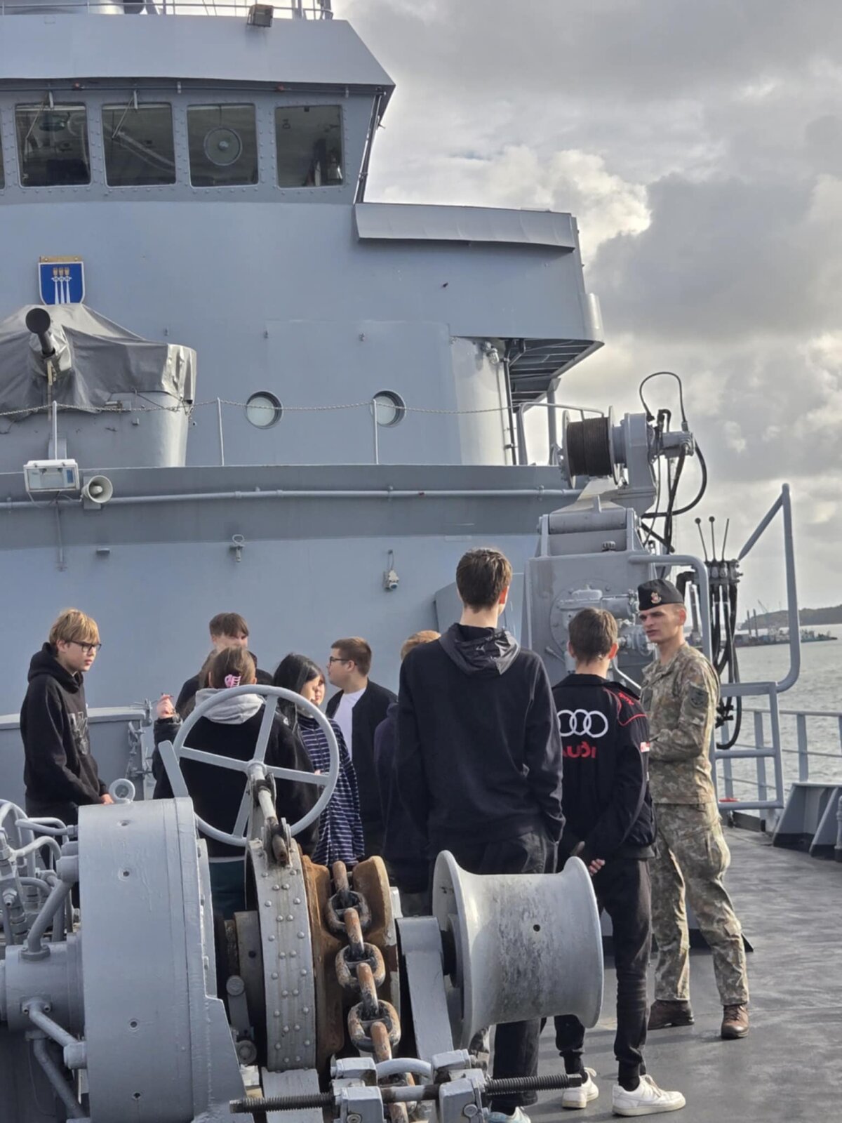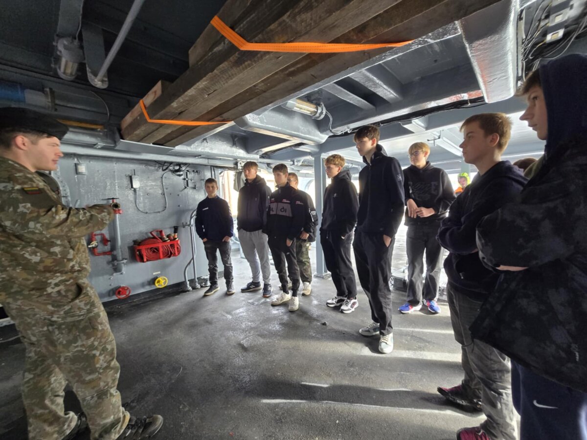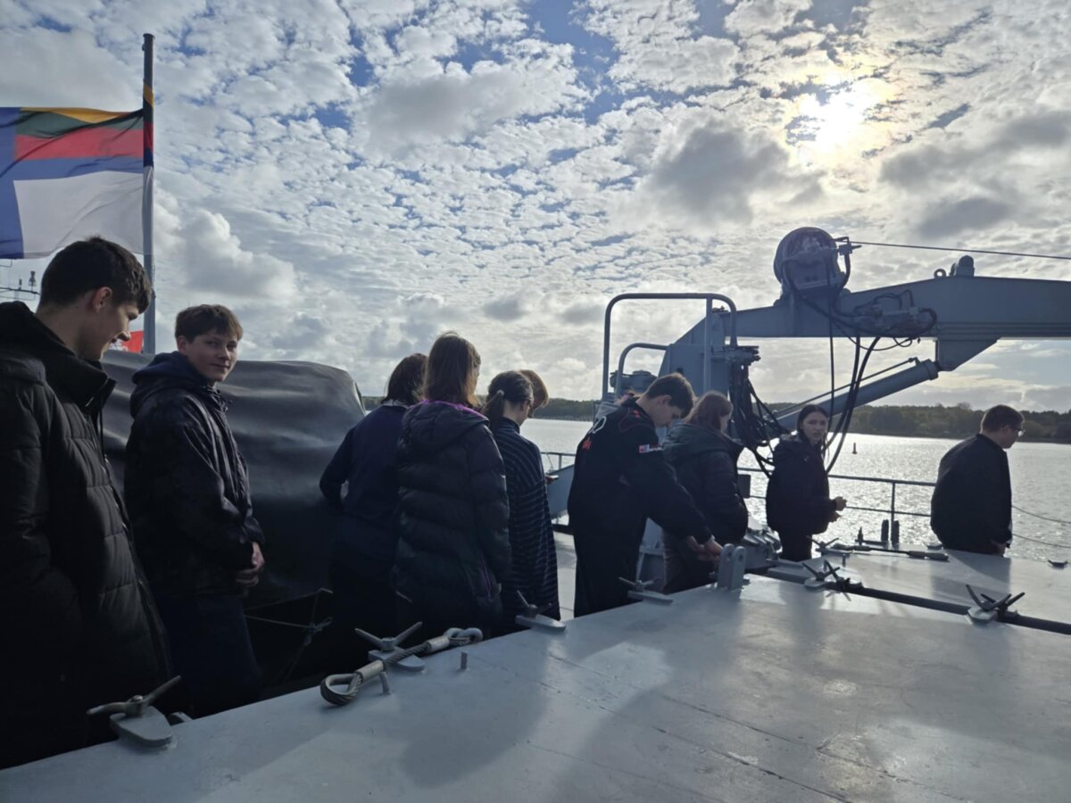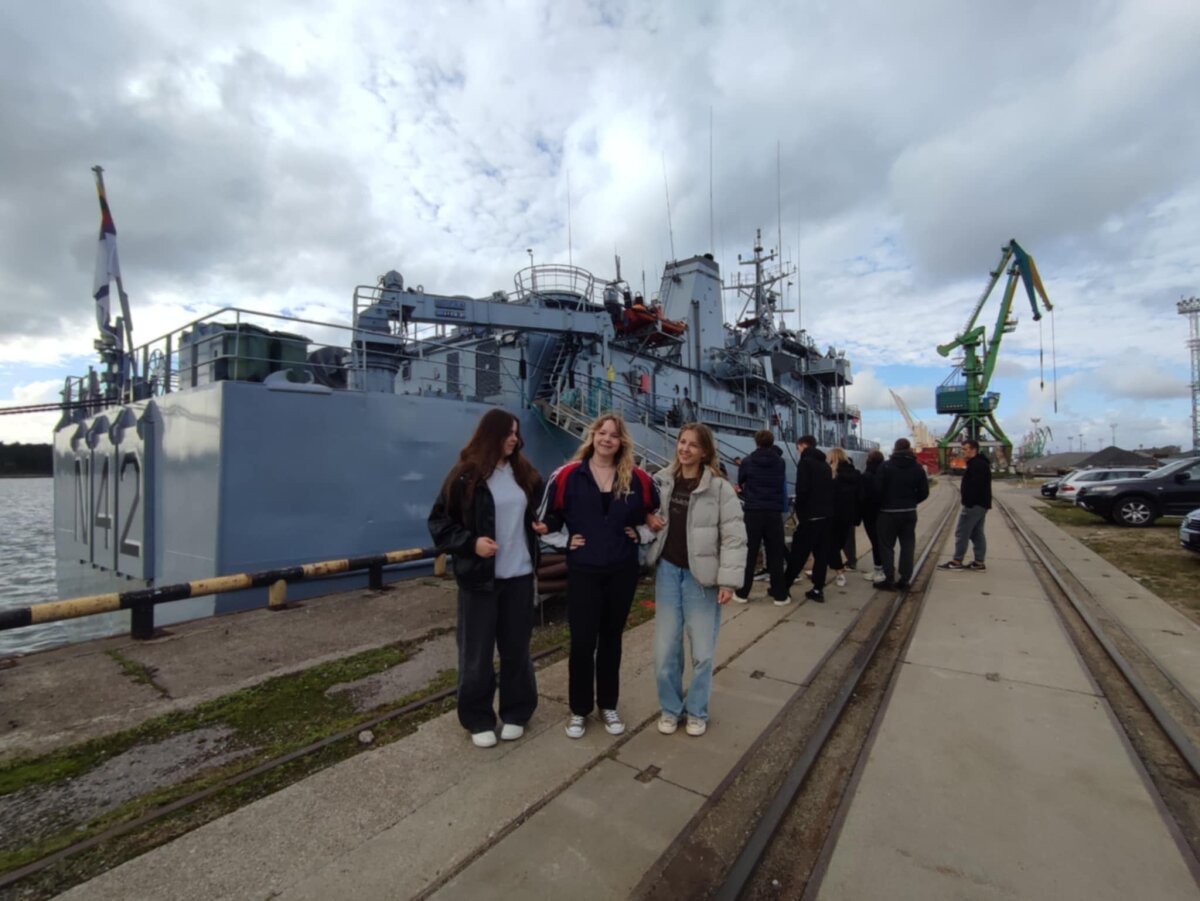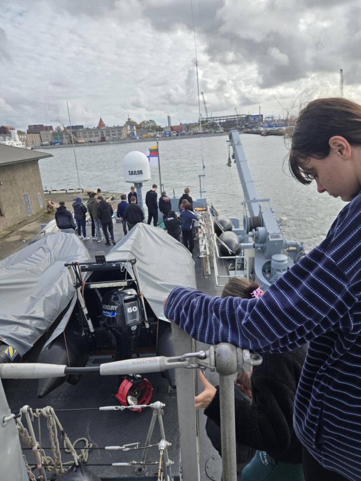 Įdomiausia dalis – ekskursija karo laivų flotilėje, kur pasiskirstę į 3 grupes su lydinčiais mokytojais ir ekskursijas vedančiais kariais apsilankėme pagrindiniuose laivuose: „Aukštaitis“, „Skalvis“ ir „Jotvingis“.
