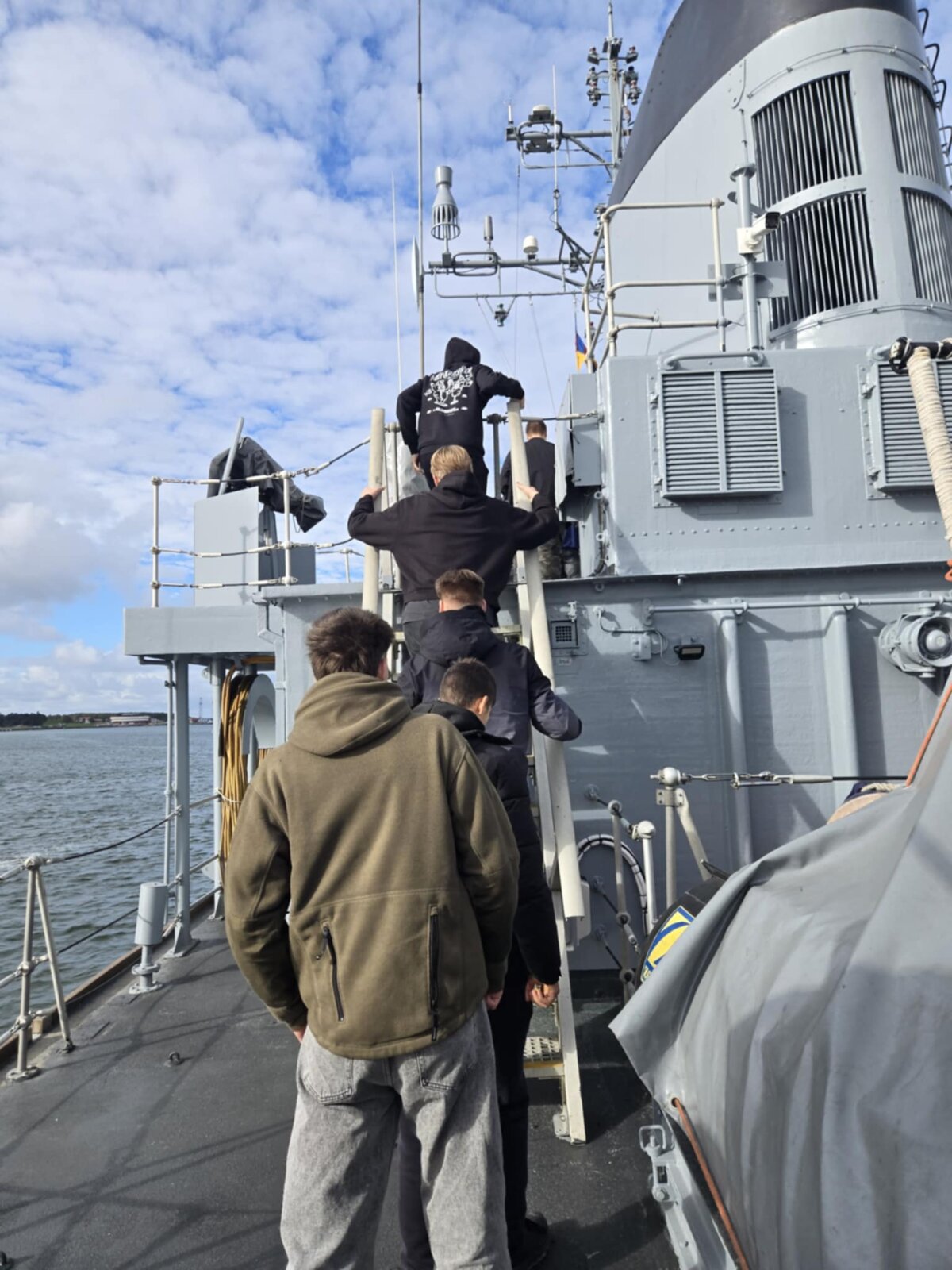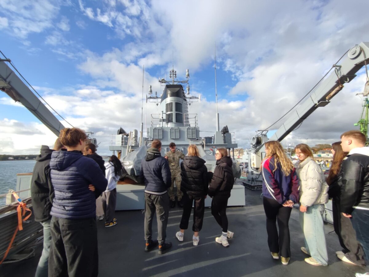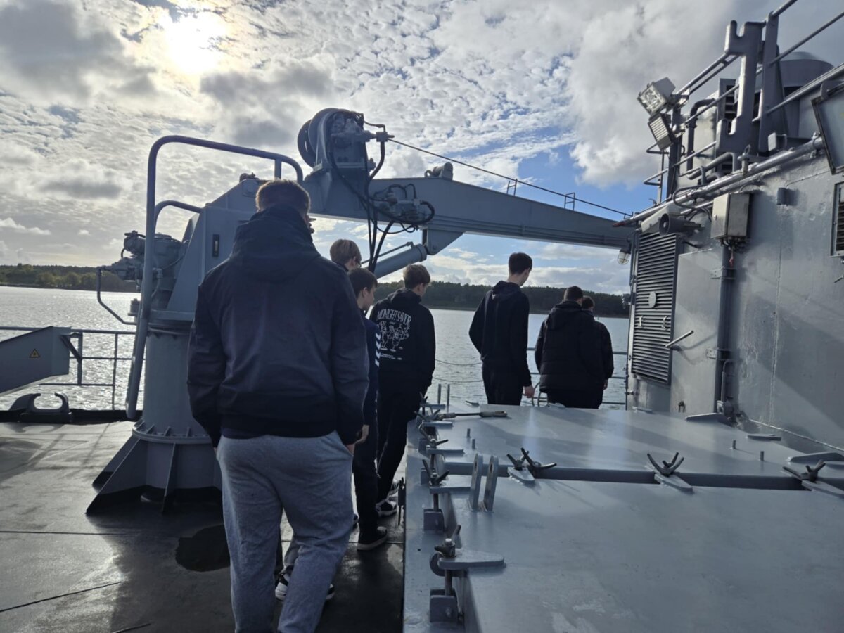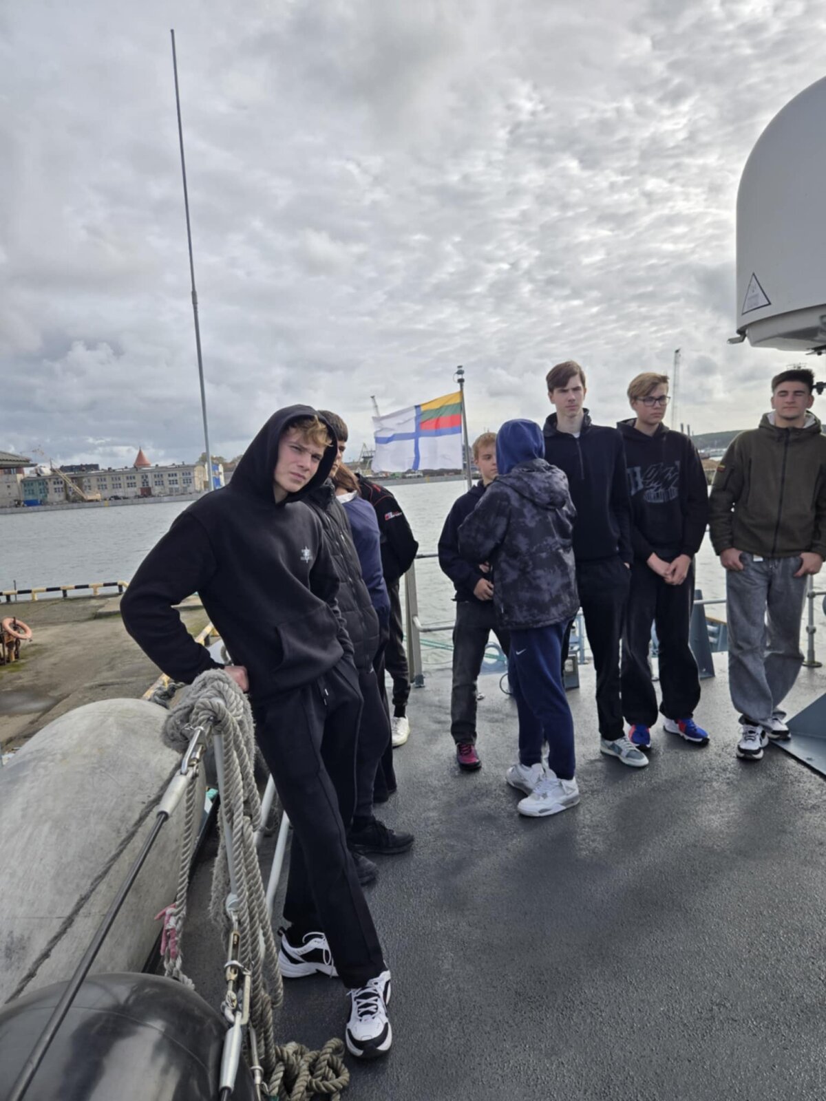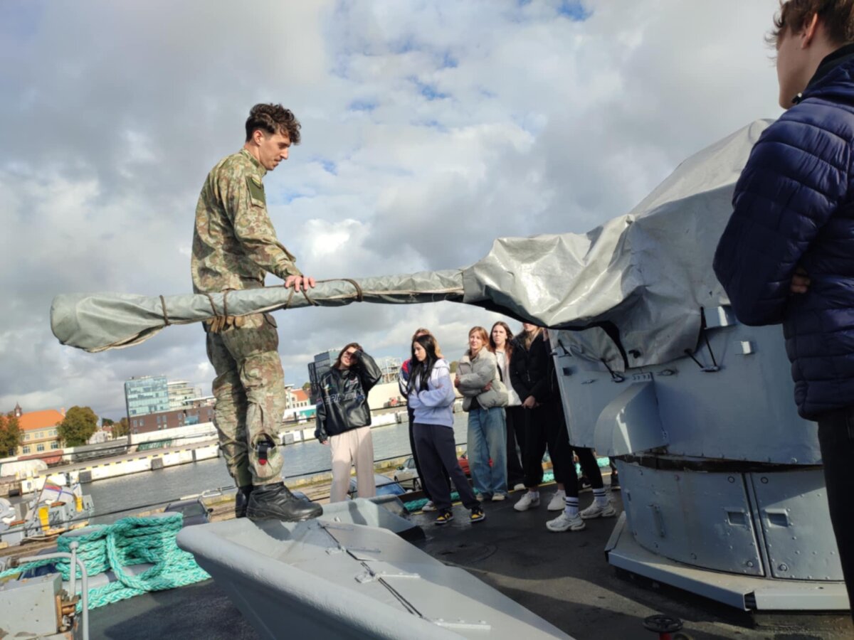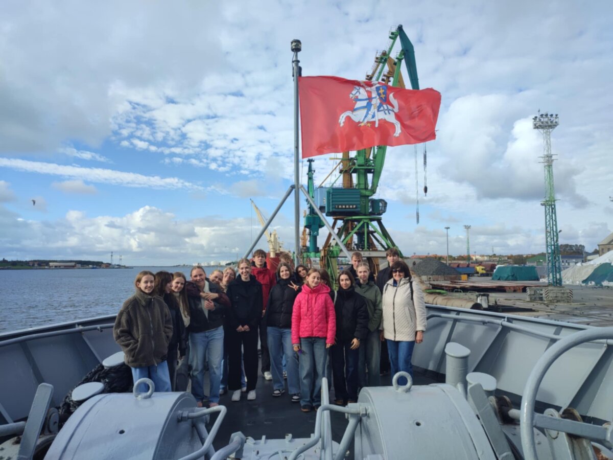 Įdomiausia dalis – ekskursija karo laivų flotilėje, kur pasiskirstę į 3 grupes su lydinčiais mokytojais ir ekskursijas vedančiais kariais apsilankėme pagrindiniuose laivuose: „Aukštaitis“, „Skalvis“ ir „Jotvingis“.