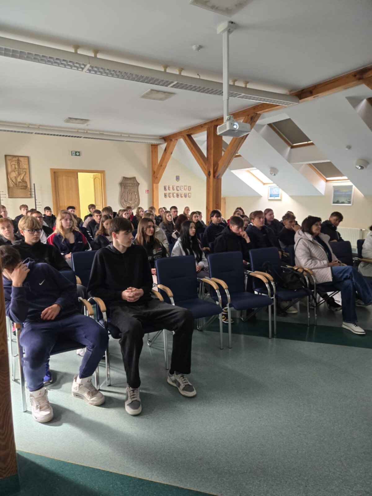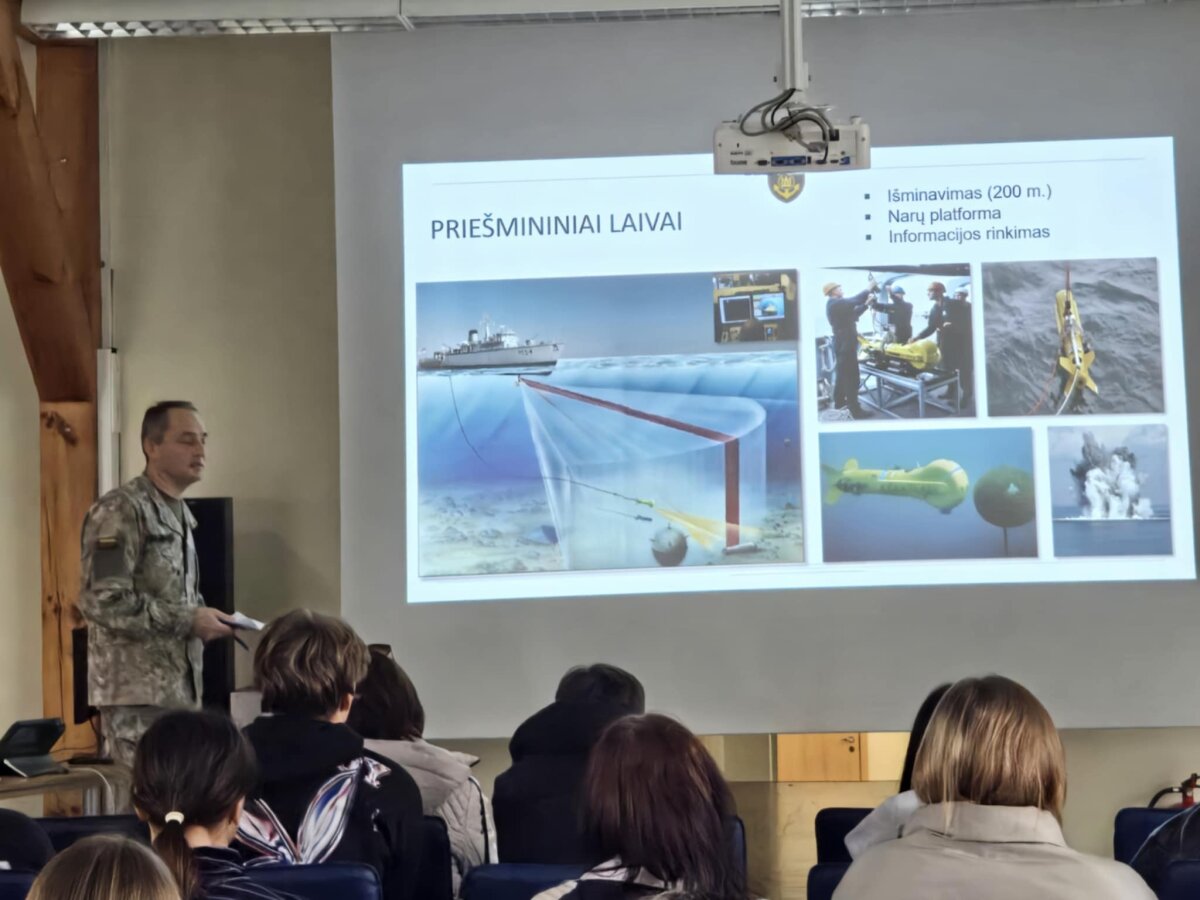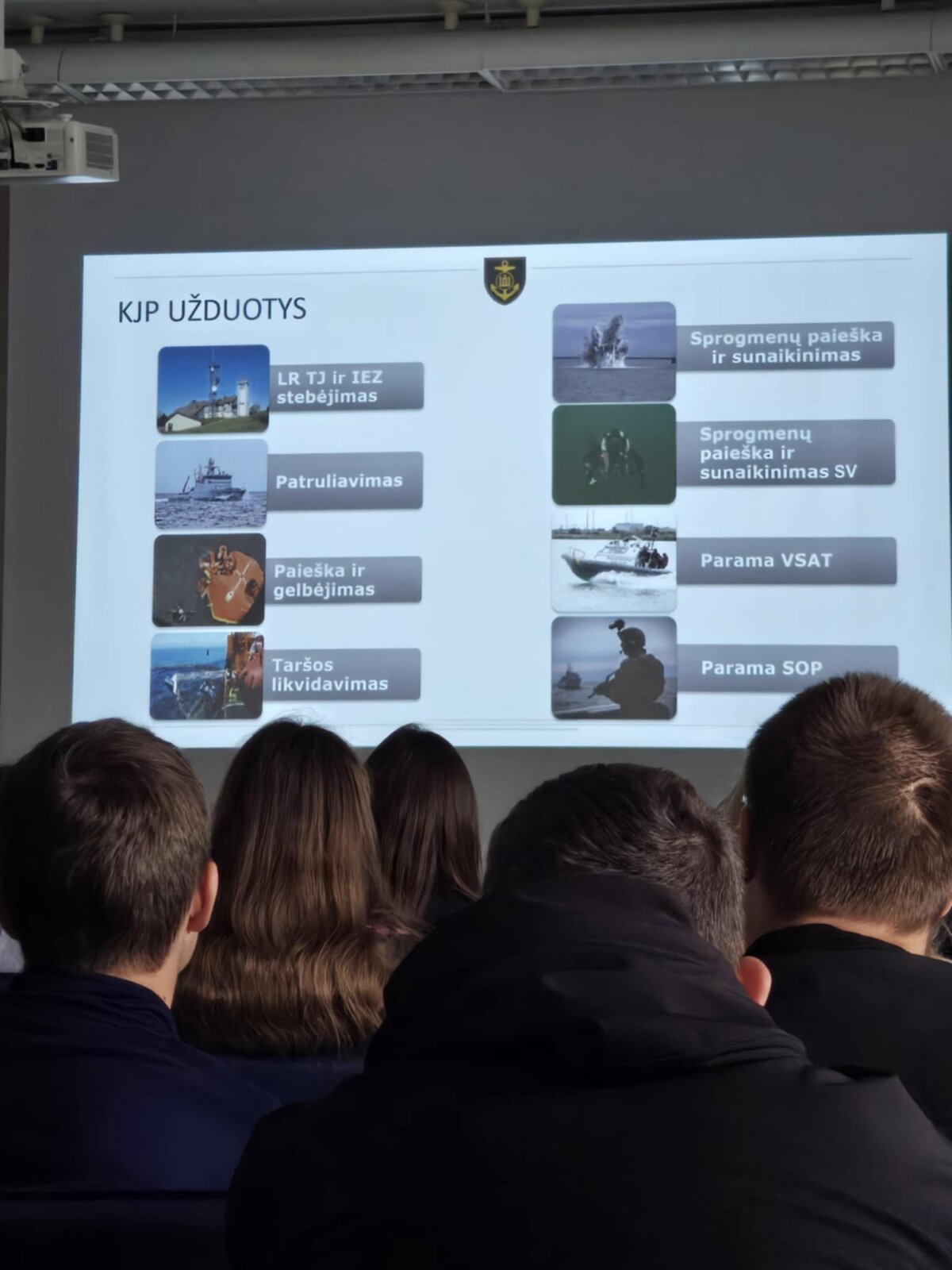 Karinių jūrų pajėgų štabe išklausėme įdomią paskaitą apie jūros ir uosto svarbą Lietuvos valstybei, karinių jūrų pajėgų užduotis, karo laivų flotilę ir jų atliekamas užduotis, karininkų rengimą Lietuvoje ir užsienyje.