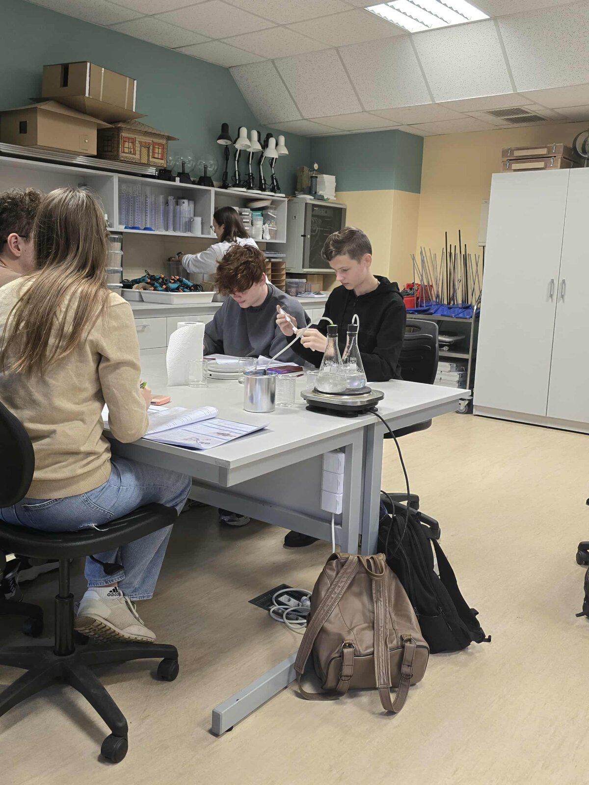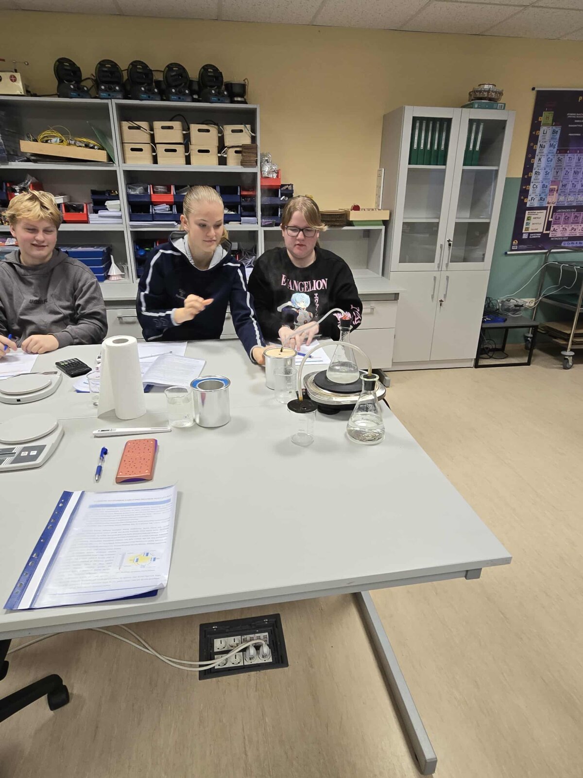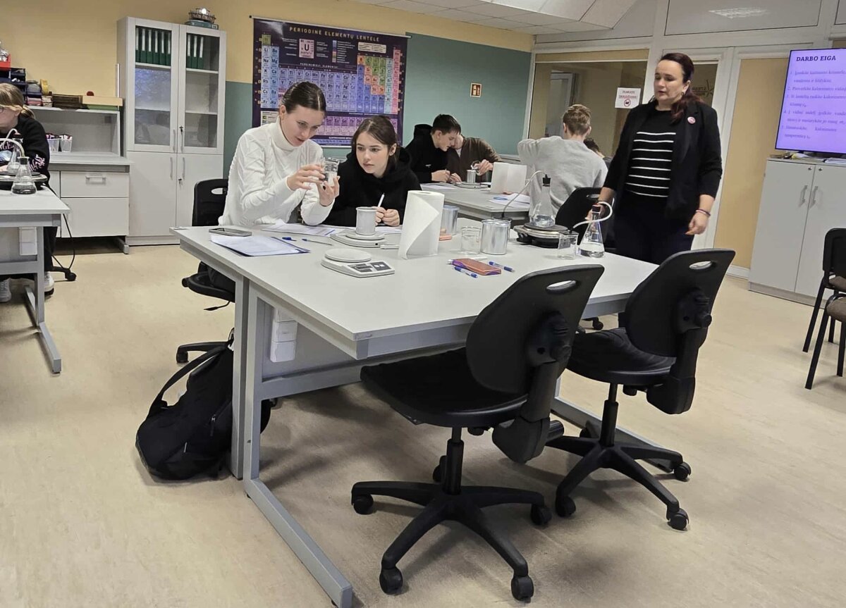 Lapkričio 14 d. Tytuvėnų gimnazijos I ga klasės mokiniai Šiaulių STEAM centre atliko tiriamąjį darbą „Vandens savitosios garavimo šilumos nustatymas“. Mokiniai garus iš verdančio vandens nukreipė į kalorimetrą su šaltu vandeniu ir, įvertinę temperatūros pokyčius bei sudarę šilumos balanso lygtį, apskaičiavo vandens savitąją garavimo šilumą.