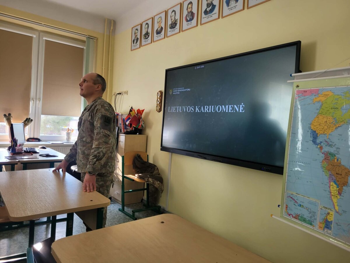 Susitikimo metu seržantas pristatė galimus karinės tarnybos atlikimo būdus, aptarė pagrindines sąlygas, kurias būtina atitikti norint atlikti tarnybą, bei paaiškino, kokios lengvatos taikomos jau tarnybą atlikusiems asmenims stojant į aukštąsias mokyklas.